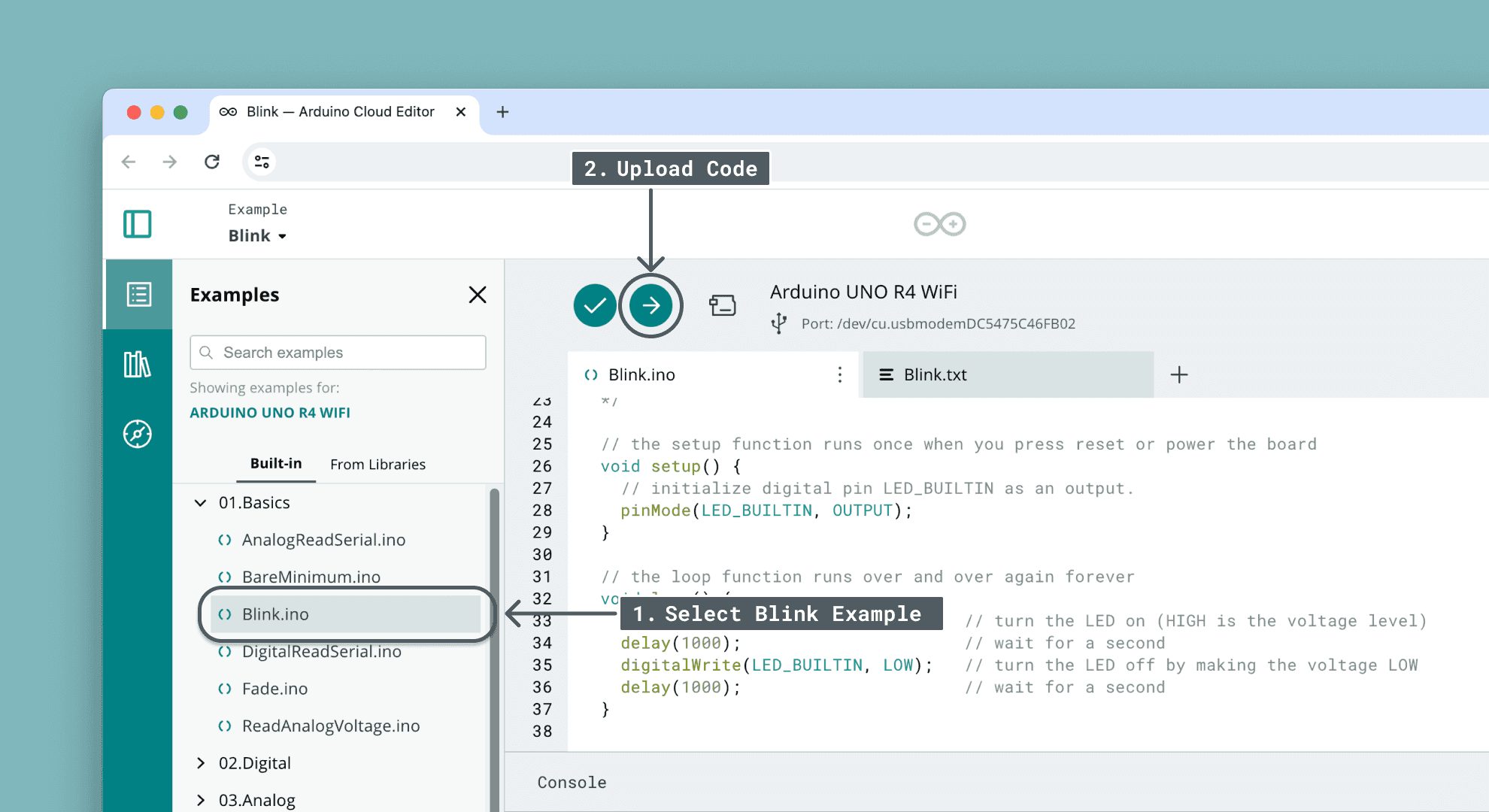 Get started with the Cloud Editor, an online IDE in the Arduino Cloud.