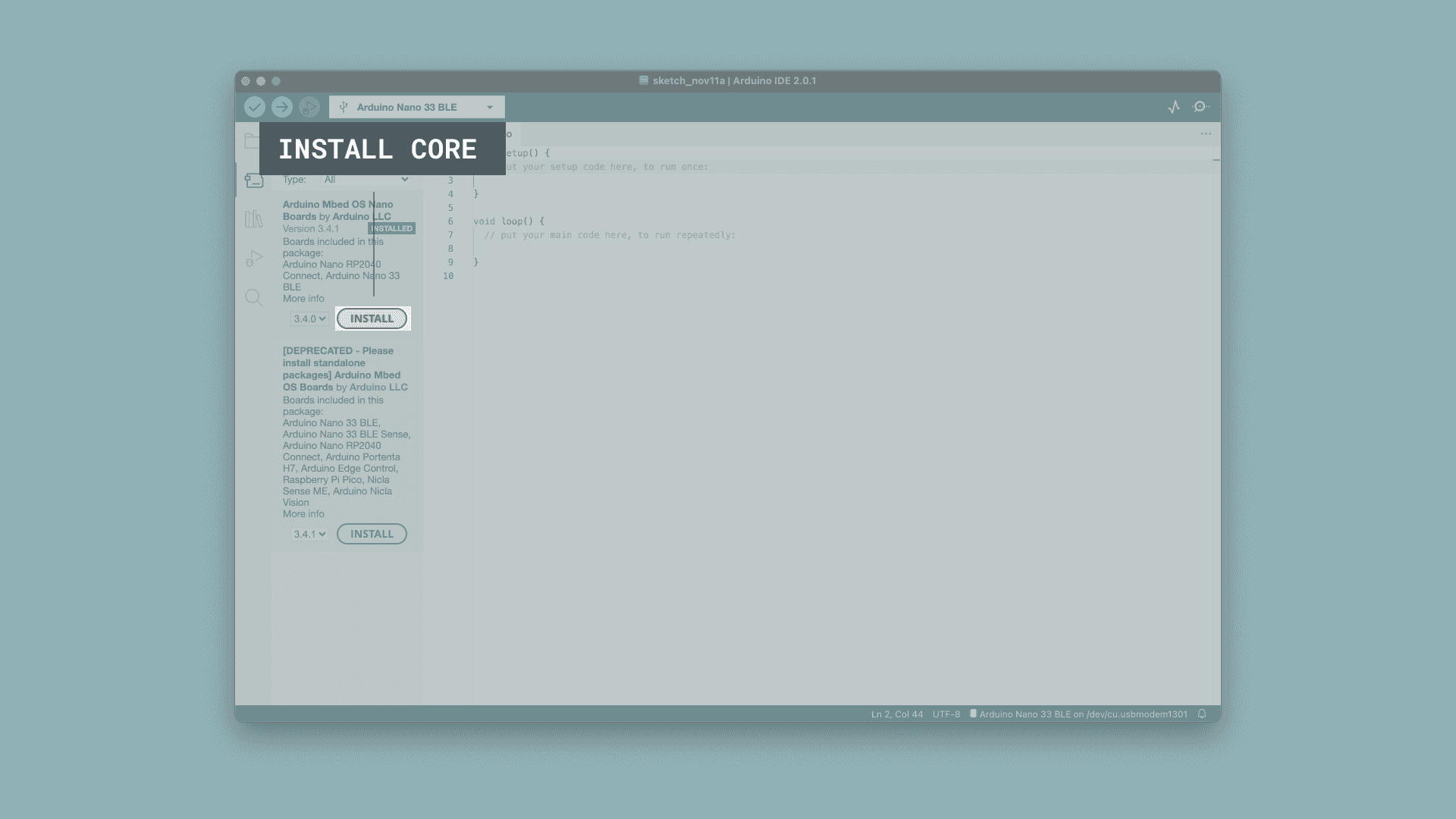 Follow the steps below to install MicroPython on the Nano RP2040 Connect board.