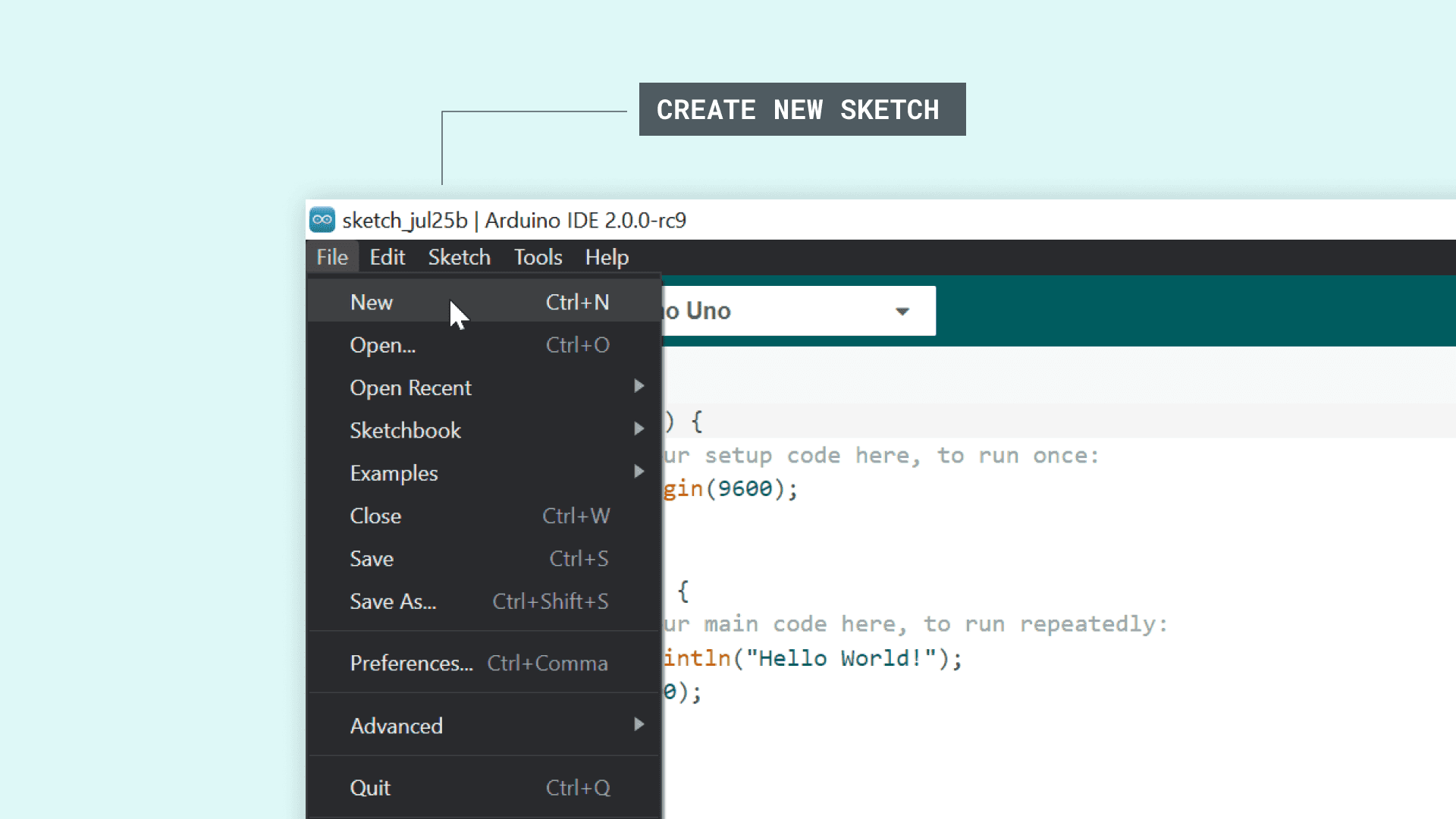 5void loop() {6Serial.println("Hello world!");7delay(1000); 8}3. This will print