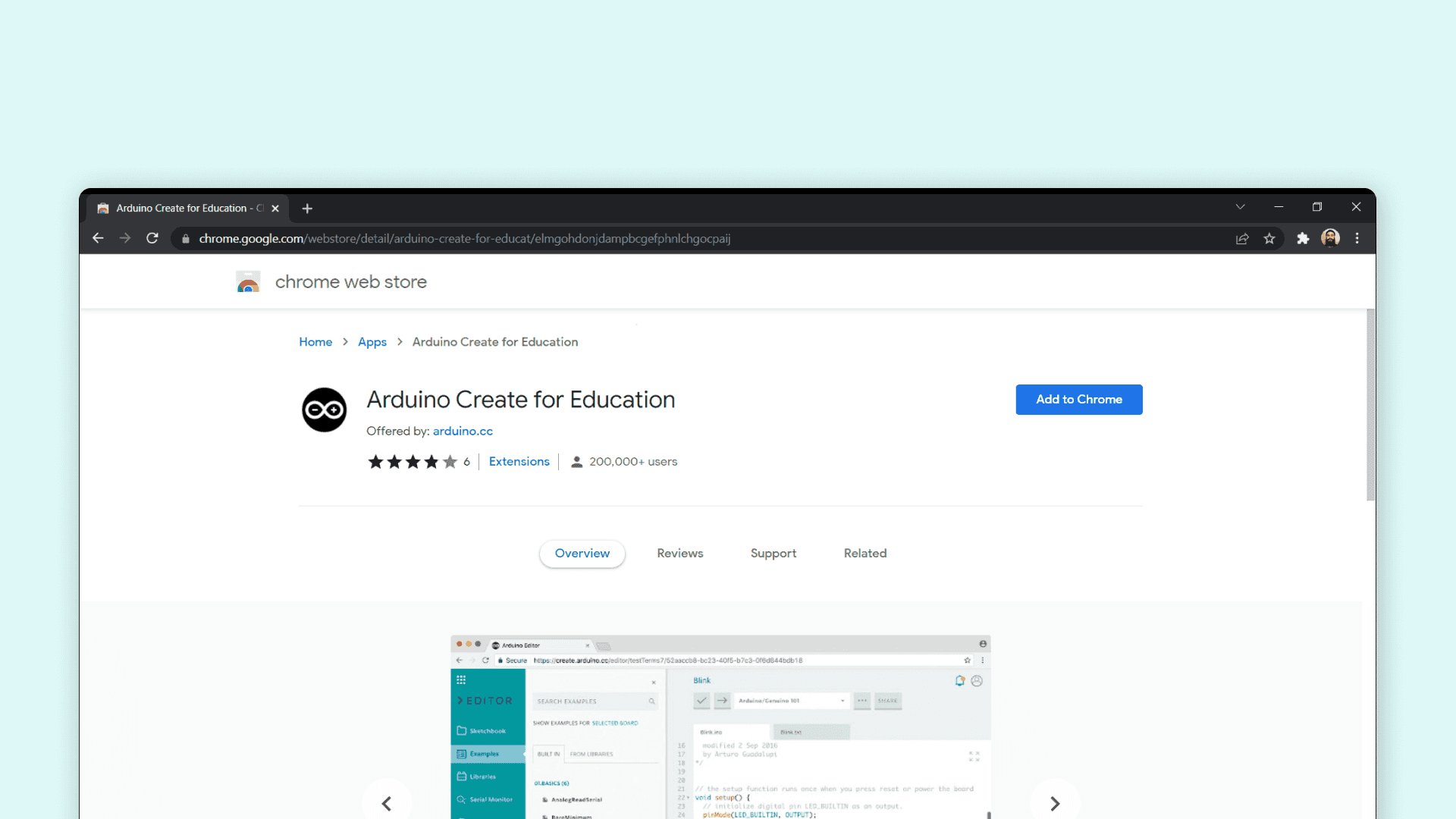 To program your Arduino via a Chromebook, you will need the Arduino Create for Education app. This is downloaded and installed via the Chrome Web Store.