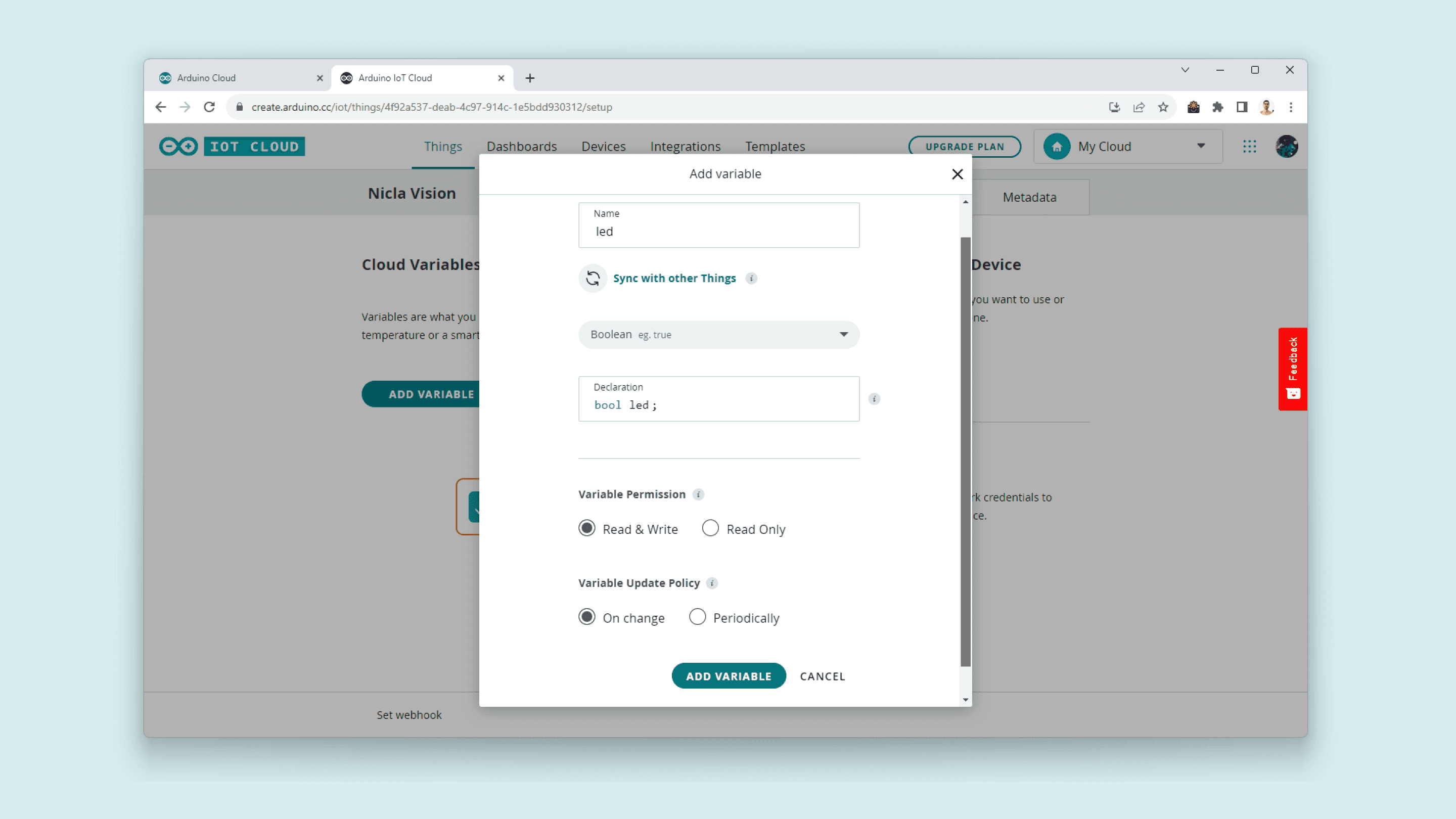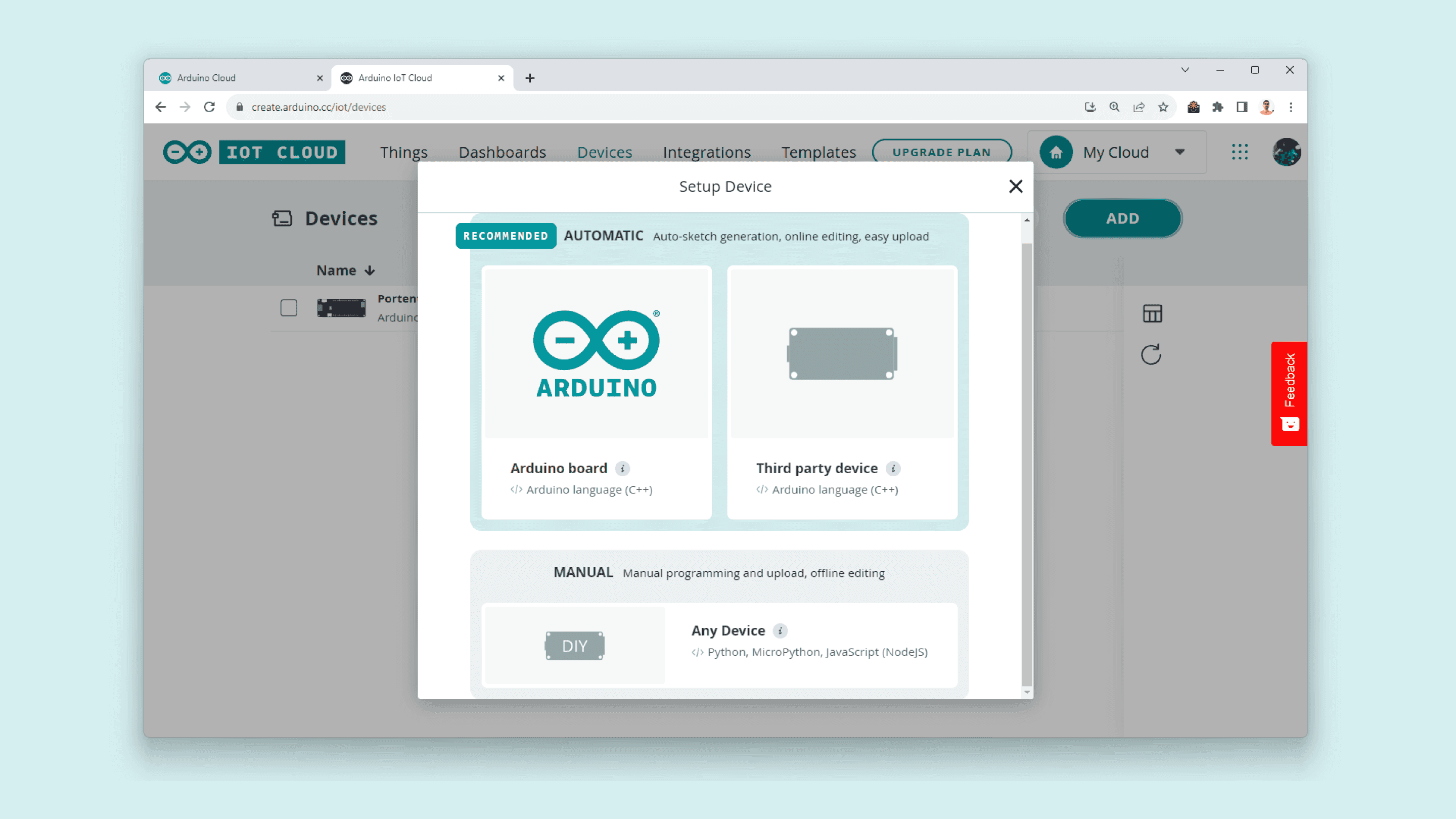 In case it is the first time you are using the Arduino Cloud: