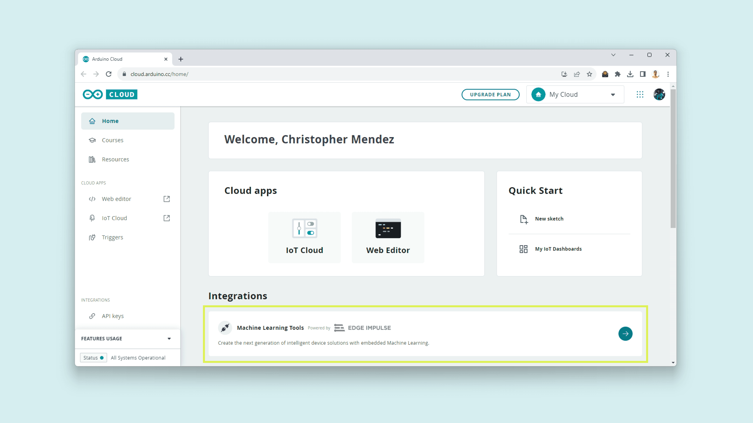 - To create custom Machine Learning models, the Machine Learning Tools add-on integrated into the Arduino Cloud is needed. In case you do not have an Arduino Cloud account, you will need to create one first.