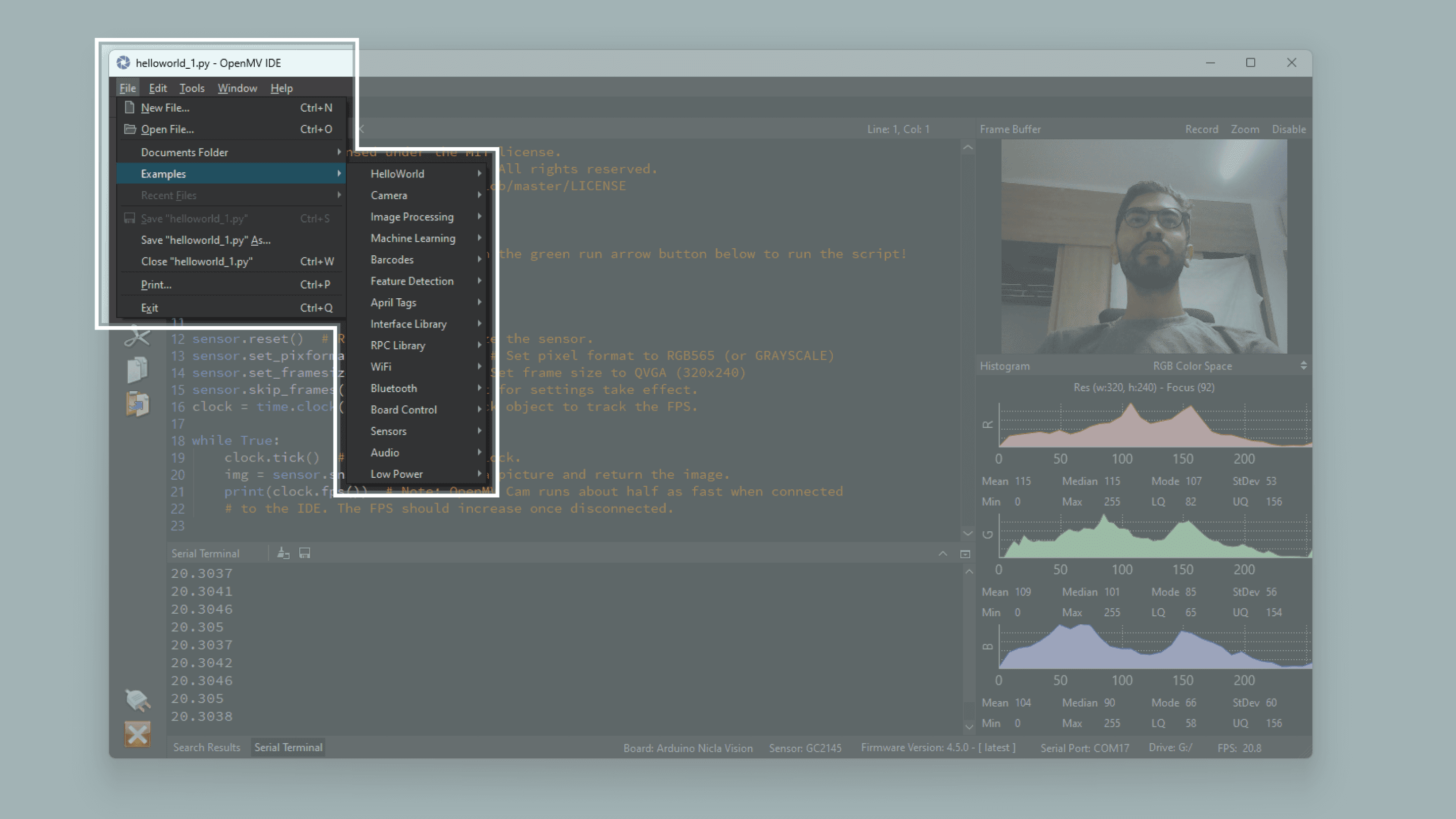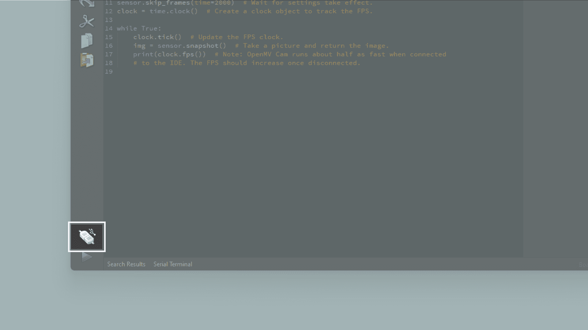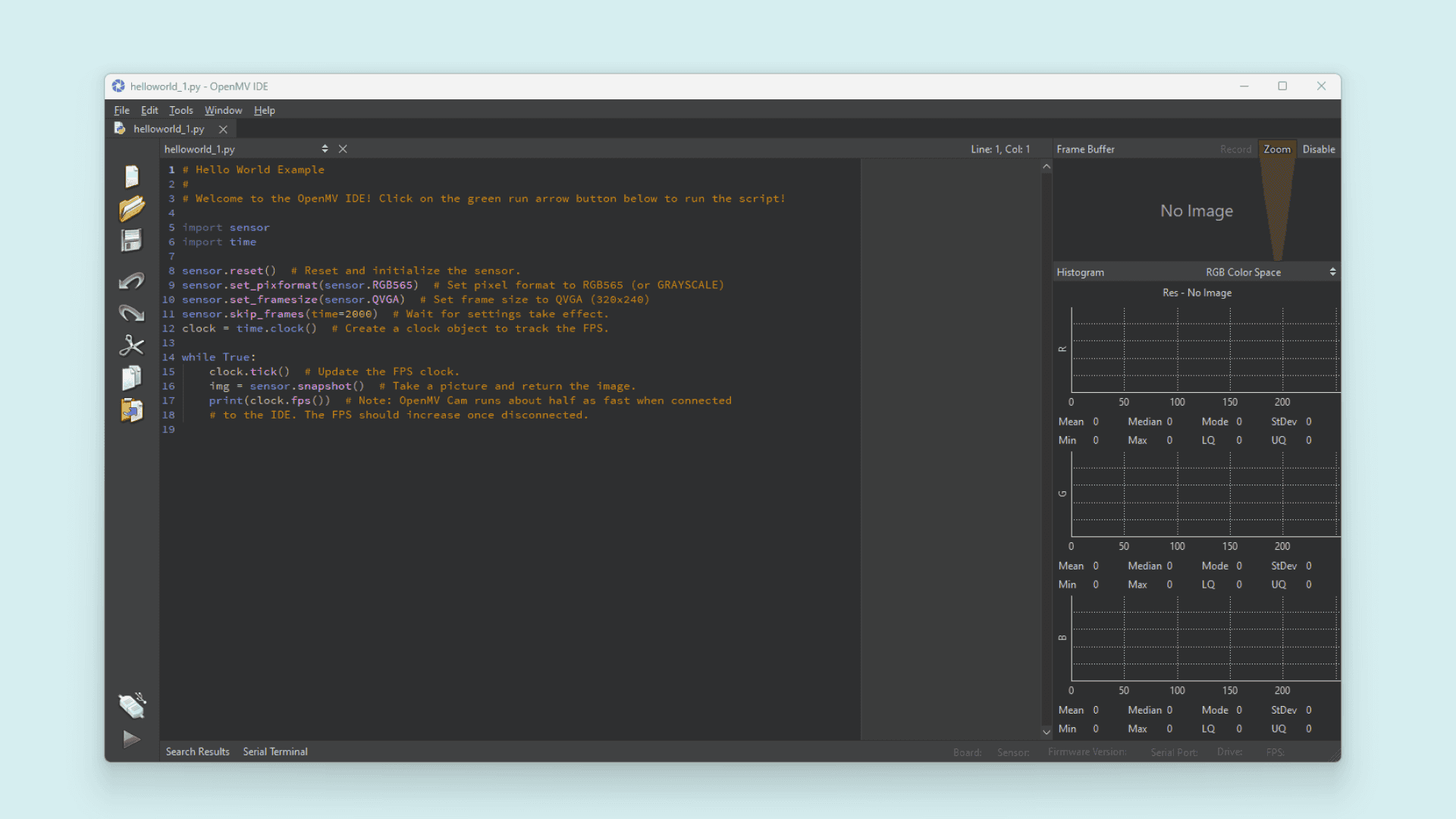 Copy and paste the code below into a new sketch in the OpenMV IDE.